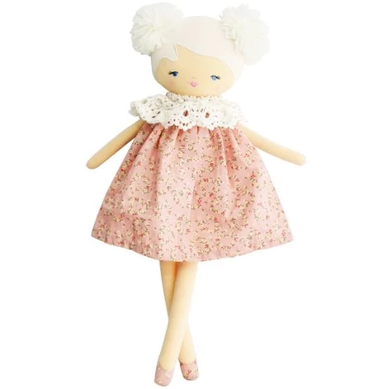 Meet the Alimrose Aggie Doll 45cm Posy Heart in her sweet baby doll style dress with cotton lace collar.