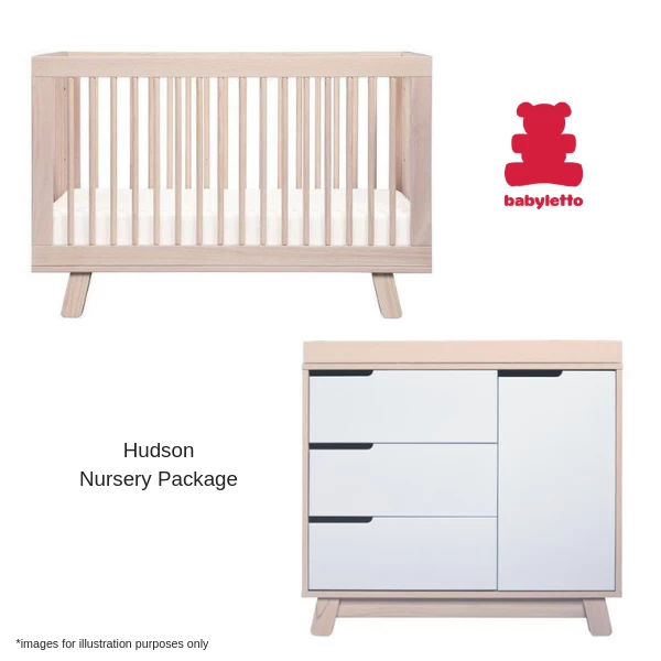 The Babyletto Hudson Nursery Package includes the Hudson Cot, Innerspring Mattress & Hudson 3Drawer Changer.