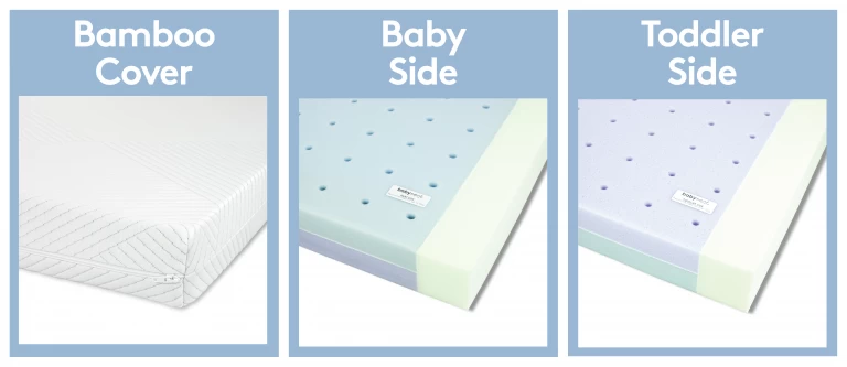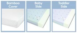 - The Baby Side is specifically engineered to suit baby from birth to 12 kg (approx. 2 years old). At this stage, the mattress is turned over to the Toddler Side, which has increased firmness to support their growing body.