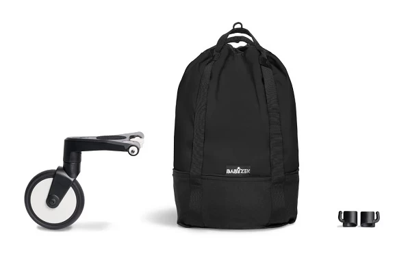 YOYO bag hooks onto the YOYO stroller in seconds and, thanks to its wheel, supports an additional 10 kg (22 lbs) without extra efforts.