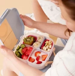 - 2 sealed compartments are leak proof securing wet foods such as puree, yoghurt and dips
