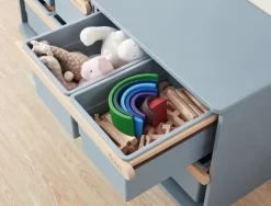 The Boori Tidy Toy Cabinet is designed to help keep your child’s bedroom or playroom clutter-free, our Tidy Toy cabinet features two full-width drawers both containing two plastic storage tubs.