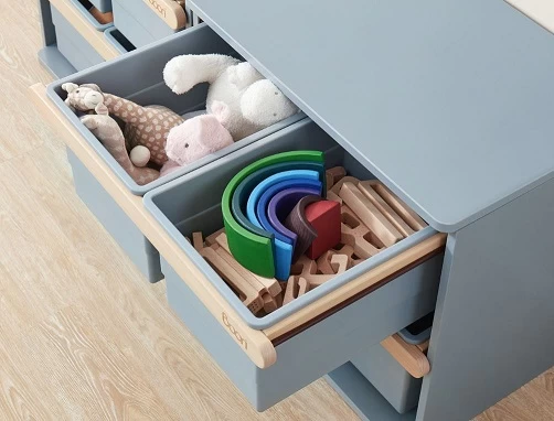 The drawer frames are made from sturdy solid wood and the storage tubs can be easily removed to make it easier for toys to be put back neatly.