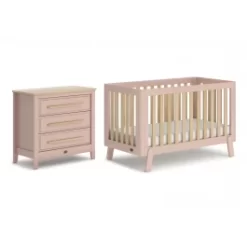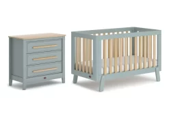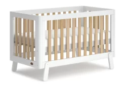 The Boori Turin Cot will add a touch of Nordic charm to your nursery. With a contemporary two-tone design and playful angled feet, the Turin offers a cheerful addition to the nursery.