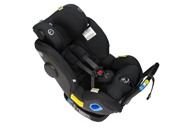 The enclosed shell design provides enhanced shielding to ensure the child is contained within the protective elements of the child seat. A protective barrier between the child and the vehicle.