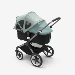 The Bugaboo Fox5 Breezy Sun Canopy features UPF 50+ fabric and breezy mesh panels to shade your baby head-to-toe against sun rays while keeping them cool during hotter days.