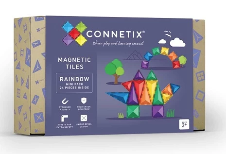 Whether you are looking for the perfect gift, curious about Connetix magnetic tiles, or wanting to expand your collection, the 24pc Rainbow Mini Pack offers exciting opportunities!