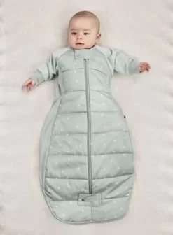 The ergoPouch Sheeting Sleeping Bag 3.5 TOG is perfect for keeping a child warm overnight in rooms 14-21°C / 57-70°F. The sleeves on the Sheeting Bag are rated 1.0 TOG and provide extra warmth on cooler nights. The TOG rating means that there is no need for additional blankets in the cot when using this product, making it a safe-sleep option. Parents can be rest assured that the breathable organic, natural fibres will help regulate their child’s temperature and prevent overheating. Parents can follow the FREE room thermometer and What to Wear guide provided with the product, to layer appropriately underneath to keep their child warm. We recommend pairing this pouch with one of our TOG-rated Layers, Bodywear or Pyjama’s underneath (sold separately).