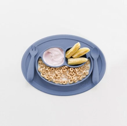 With the EZPZ Mini Feeding Set (the Mini Mat, Mini Spoon and Mini Fork) provides all of the developmental tools you need for independent mealtime with your toddler.