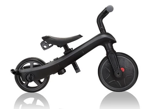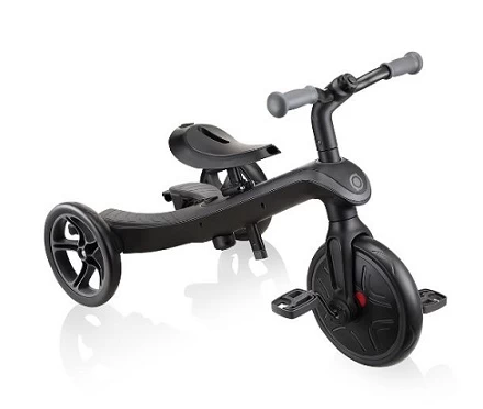 The Globber Explorer Trike 4 in 1 Deluxe Grey is the ALL-IN-ONE DESIGN EXPLORER TRIKE is equipped with our patented wheel mechanism to easily and quickly convert the two rear wheels into a double width wheel without any tools, to transform the product from a tricycle to a balance bike!