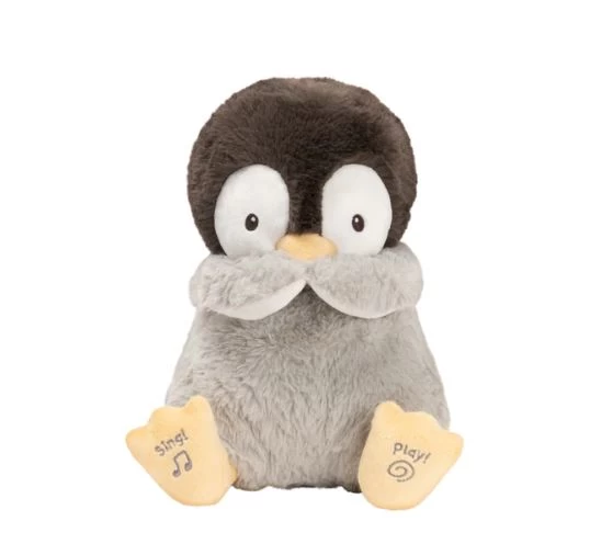 Play, sing, snuggle and blow kisses with the Gund Animated Kissy Penguin. Animated Kissy is the sweetest, most cuddly baby penguin that loves to blow kisses to her friends and teach baby how to give them back! Press Kissy’s feet to hear her sing and move her wings along with “Frere Jacques” or play an interactive kissing game as Kissy lifts her wings to her beak and back down in a “kissy” motion to teach baby how to blow a kiss back to her and all of their loved ones! Kissy has safe embroidered features, super soft plush, and a huggable body that is safe for all ages and ready to be baby’s best friend right from the start!