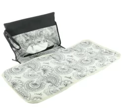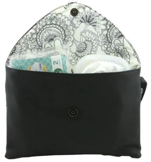 The Isoki Windsor Change Mat Clutch Onyx has been designed to be the a true fashion statement for nappy changes on the go. This clever solution for being out and about with your little one is a versatile clutch bag that features a removable fold out change mat, large front pocket able to hold a full pack of wipes, several nappies as well as creams & nappy bags and a custom external wipes access slot so you can grab more wipes without even opening your clutch!!