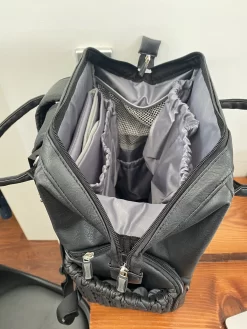 Large Capacity: 25L without being bulky. The separate pockets ensure everything needed are in their place and easy to find, including your MacBook, phone keys baby bibs, nappies, toys, etc