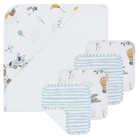 Living Textiles 5pc Baby Bath Gift Set Up Up & Away Features