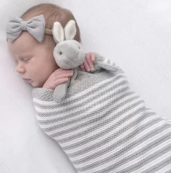 Living Textiles Knitted Stripe Blankets are Crafted from 100% cotton pearl knit, this classic stripe blanket is lightweight and breathable.