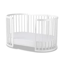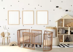 The Lolli Furniture Sprout 4 in 1 Cot + Mattress Set is made from European beech wood, the innovation & ingenuity lies with its ability to expand and evolve from a bassinet into a cot, then a junior bed, until it becomes a table and chair set!