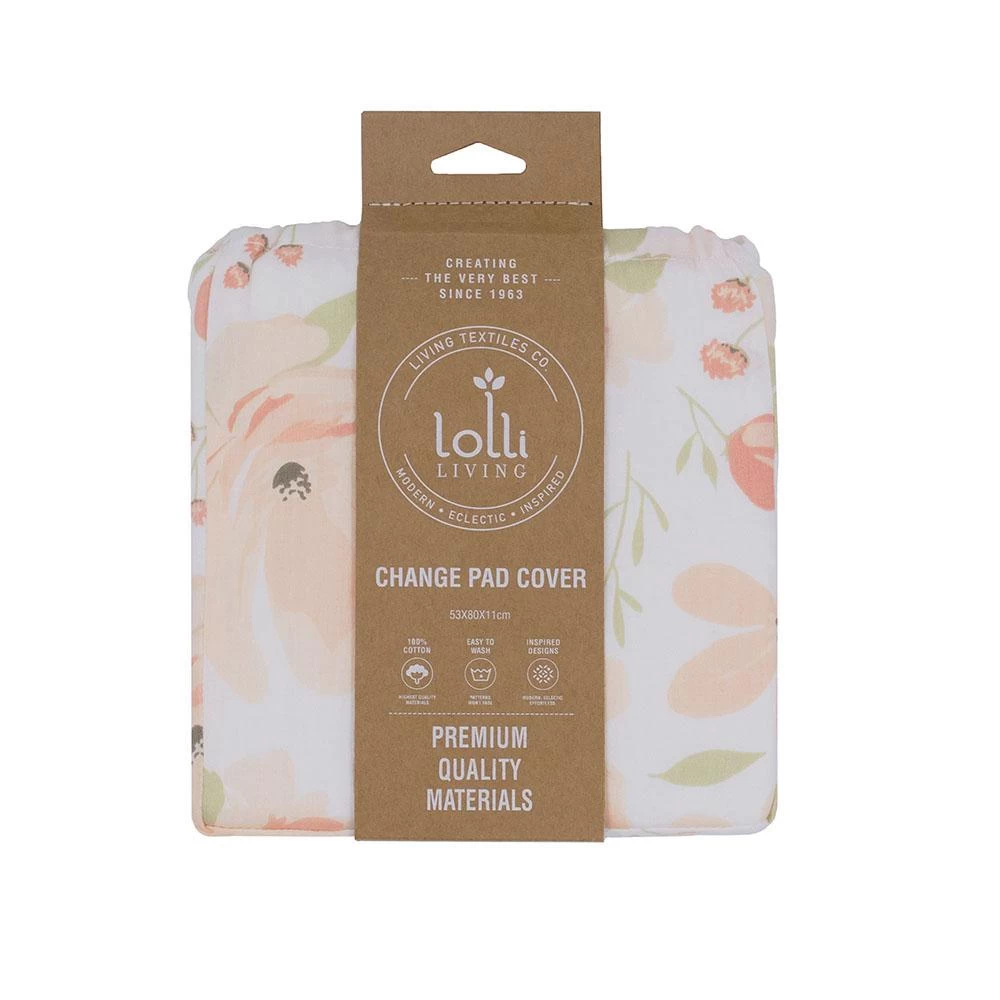 The Lolli Living Change Pad Cover Meadow cushions your little one with blush floral cotton sateen sides and an absorbent terry towelling middle layer.