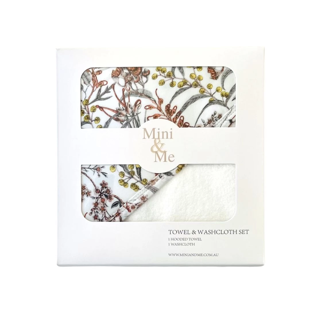 The Mini & Me Hooded Towel & Wash Cloth Set Native Garden has been designed with practicality in mind. Doubled sided terry toweling allows for you to dry you baby with both sides of the towel, when your ‘mini’ is big like my girls this really helps with long hair.