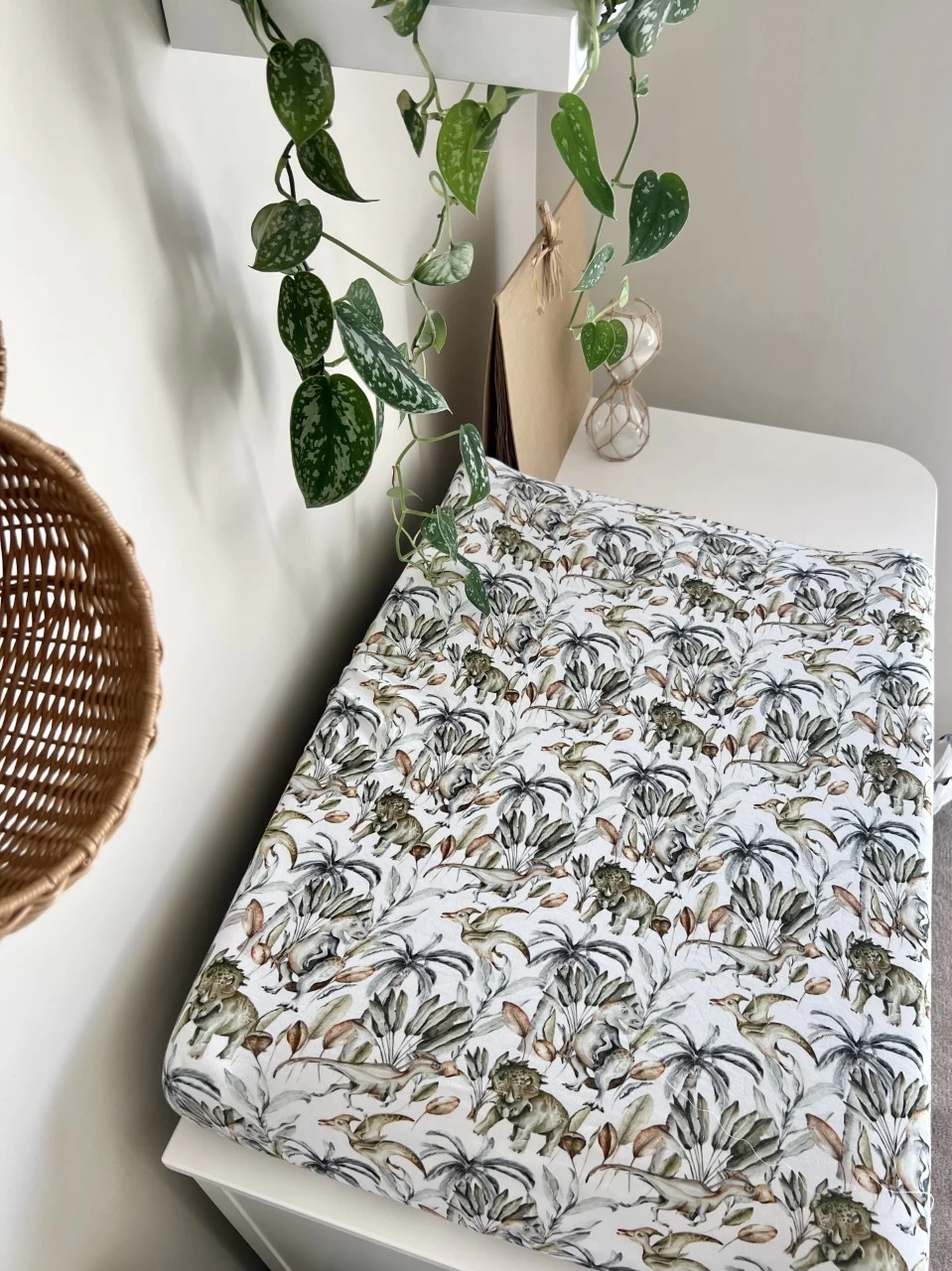 The Mini & Me Organic Fitted Bassinet Sheet Jurassic is luxuriously soft & stretchy allowing it to fit bassinet mattresses & change pads/mats of different shapes & sizes. That’s right, not only does it fit your Bassinets, you can use it as a change pad cover, in your co-sleeper, in your pram, the options are endless.