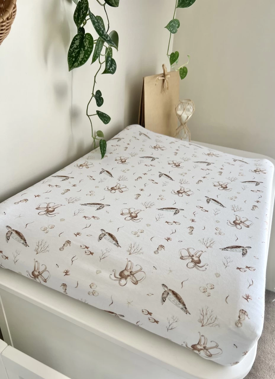 The Mini & Me Organic Fitted Bassinet Sheet Oceania is luxuriously soft & stretchy allowing it to fit bassinet mattresses & change pads/mats of different shapes & sizes. That’s right, not only does it fit your Bassinets, you can use it as a change pad cover, in your co-sleeper, in your pram, the options are endless.