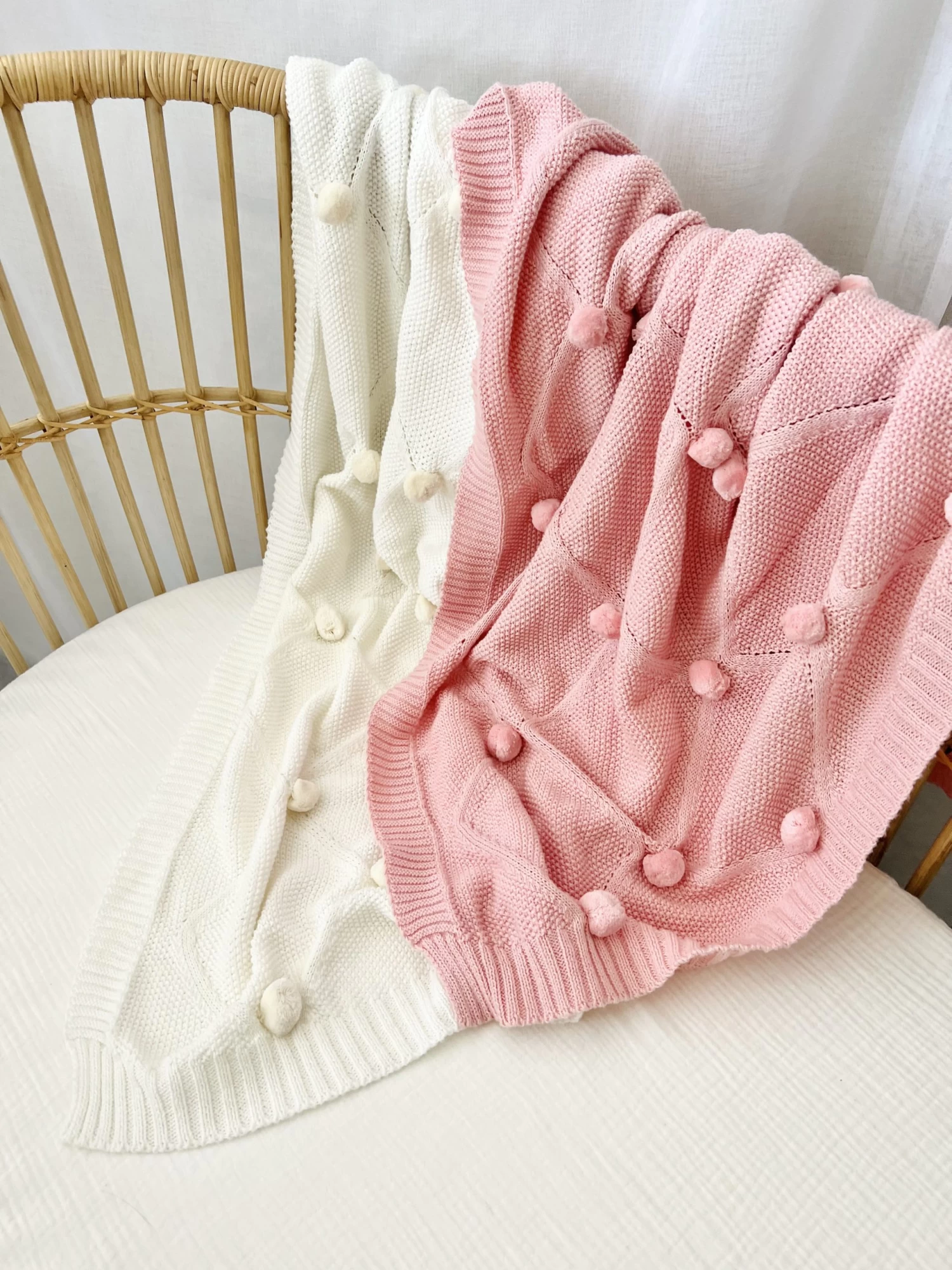 Mini & Me Pom Pom Blanket Blush Features