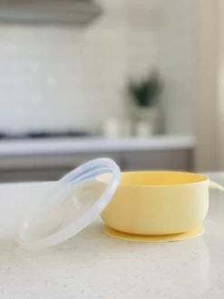 The Mini & Me Round Bowl & Lid with Suction Base is designed to grow with your infant and toddler. Our suction based is designed to be used on even surfaces, keeping it attached to your high chair or table, stopping it from being knocked over or worse… on the floor. The lid protects the contents in the fridge or freezer.