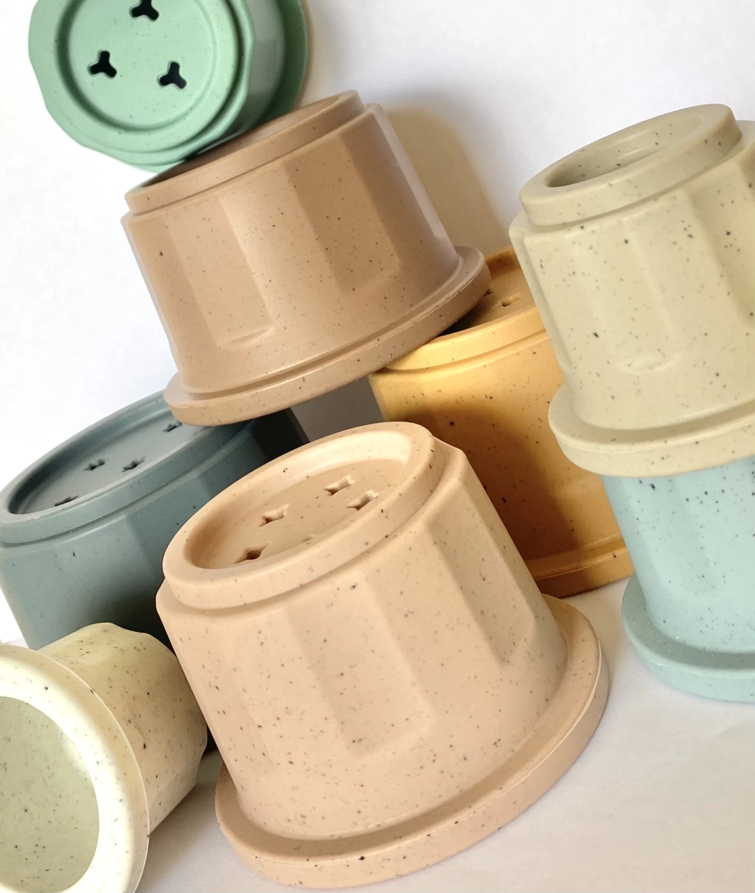The Mini & Me Stacking Cups will keep little hands busy. Featuring 8 different sized stacking cups, your little one will use their problem solving skills and hand-eye co-ordination to build a tower before knocking it down and starting all over! From there take them to the bath, where you can watch water flow through the variety of cut out shapes on the bottom.