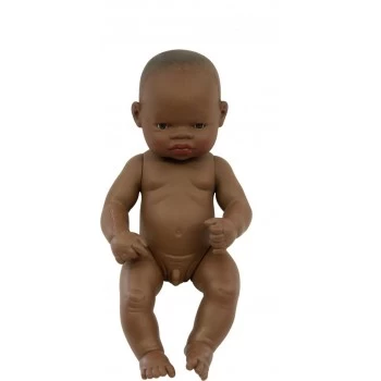 The Miniland African Baby Boy 32cm Doll is an anatomically correct doll.