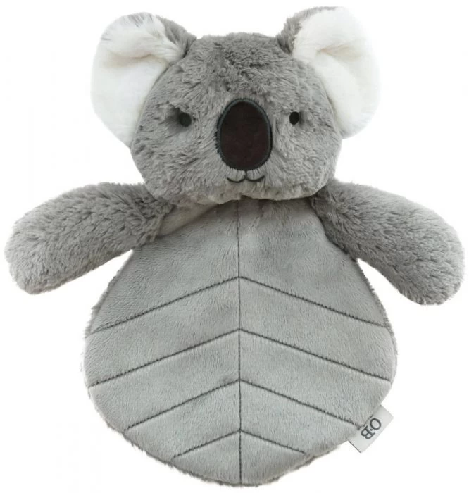 The OB Designs Comforter Kelly Koala is used to help settle babies to sleep. They are flat which makes them light and easy for little ones to snuggle. Parents commonly use them to help move away from co-sleeping arrangements. Having their mum’s smell really helps keep them settled.