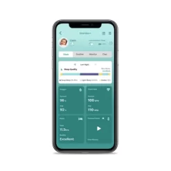 - Sleek, wearable sensor device allows you to track your baby’s heart rate, blood oxygen level, body temperature, and movement from their compatible smart device
