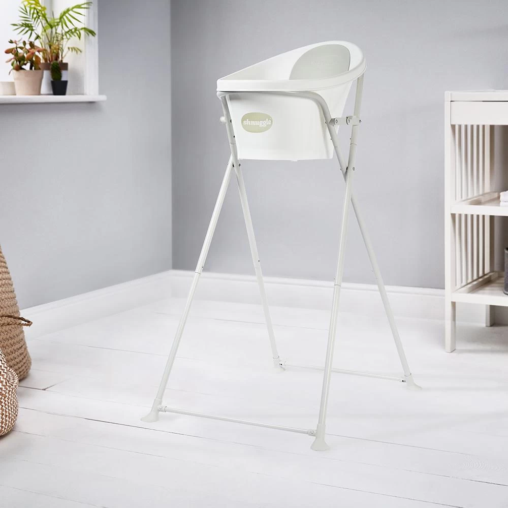 The Shnuggle Folding Bath Stand raises your baby to waist height, taking the backache out of bath time and making it easier to bath baby.