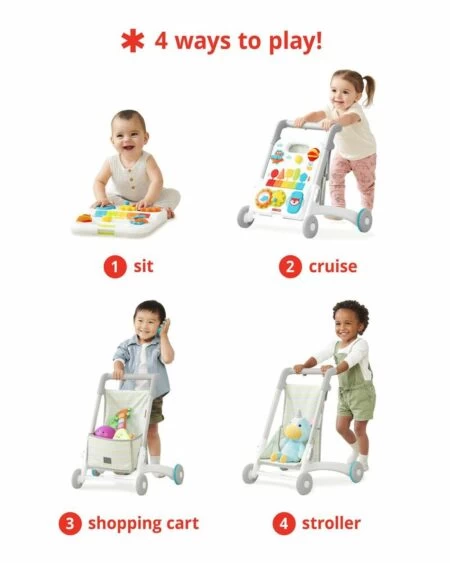 - 4 ways to play: Sit, Cruise, Shopping Cart, Stroller