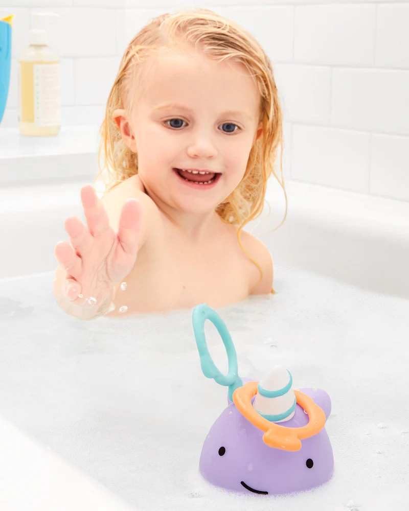 Just toss the rings onto its horn and score a splash of bathtime fun!