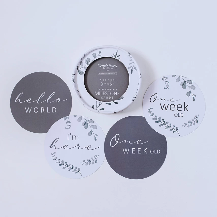 The Snuggle Hunny Kids Reversible Milestone Cards Wild Fern & Grey contains 25 milestone cards that coordinate with a range of our products.