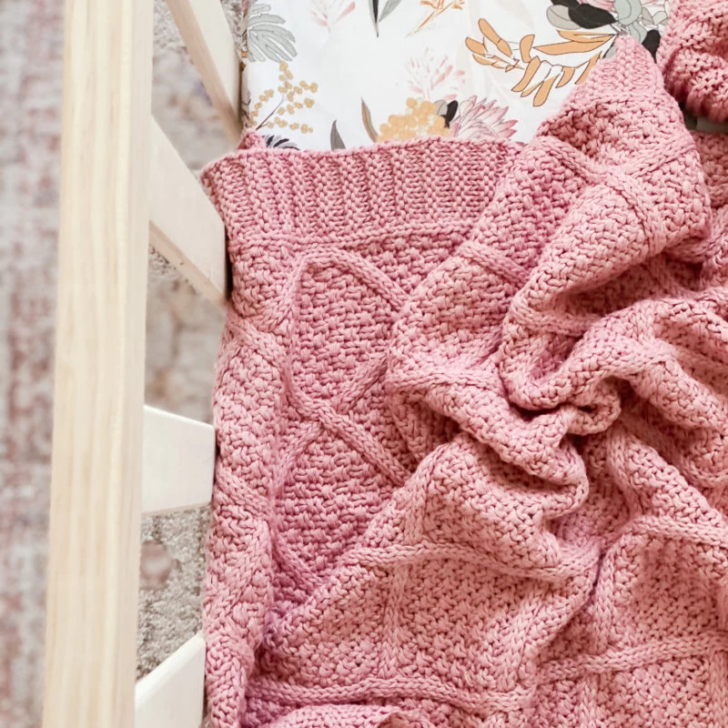 The Snuggly Jacks Knitted Blanket Rose are made from 100% organic cotton yarn ensuring your baby remains warm and cozy. Made to 90cm x 75cm, this blanket is great to throw in your pram or car seat or even to use when out and about as a play rug,