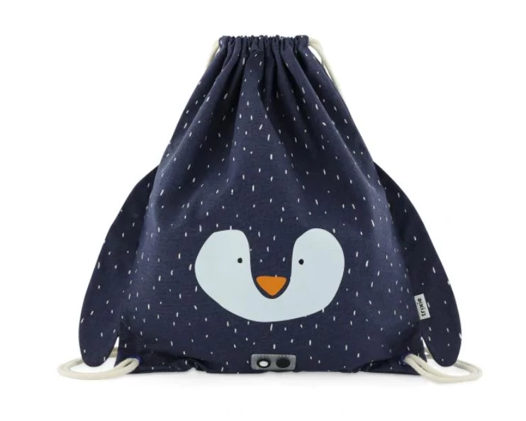 Trixie Drawstring Bag Mr Penguin is a fun and handy gym bag featuring our animal friends, which you can also use as a swimming bag thanks to its water-repellent coating.
