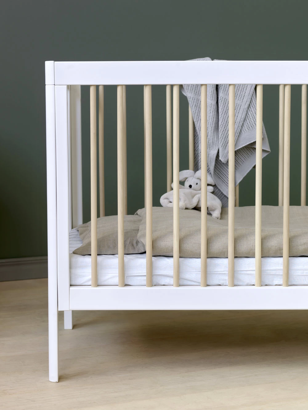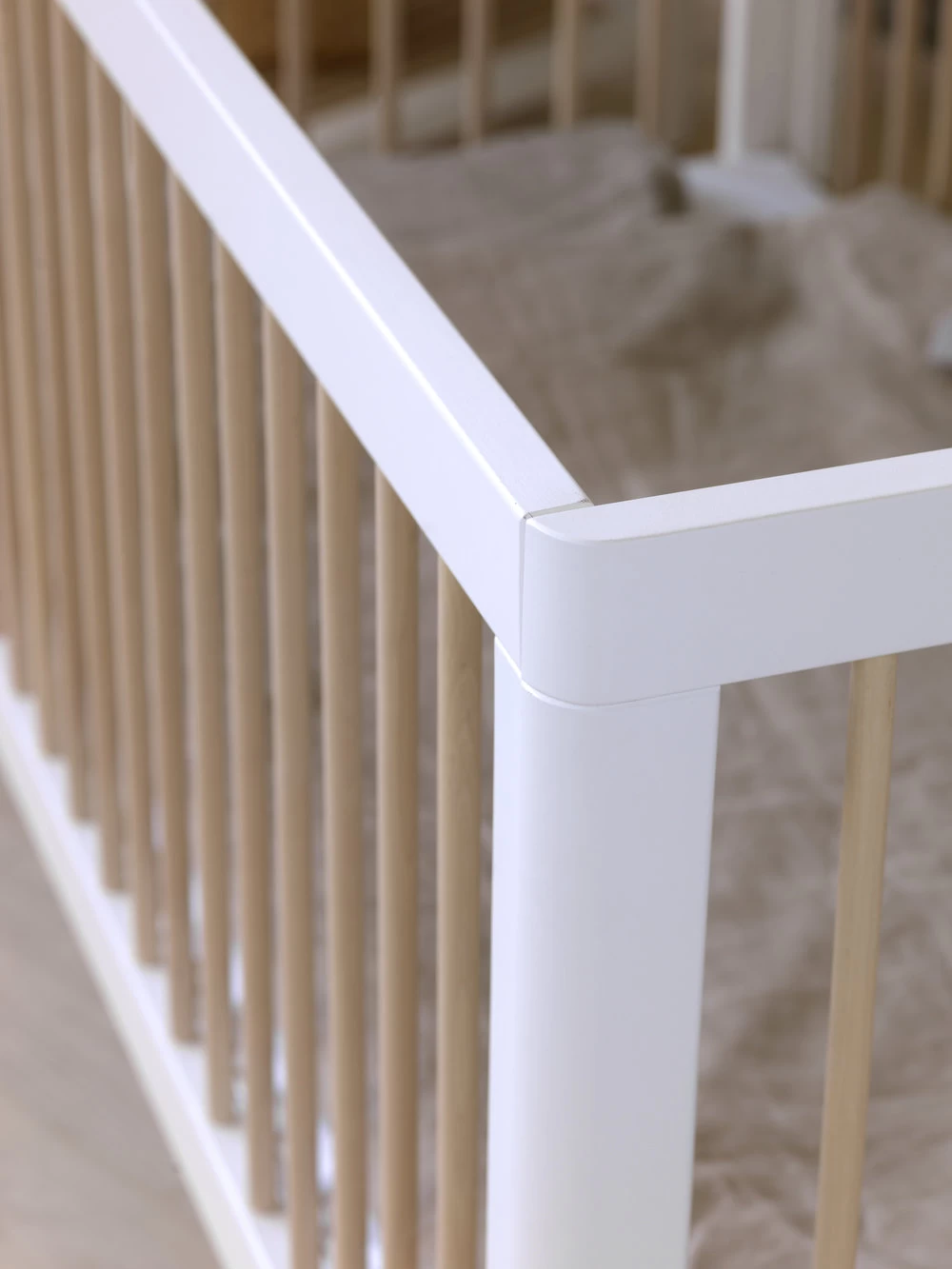 Lukas is easily transformed from a cot to a junior bed, using the same screws and screw holes when changing the long sides.
