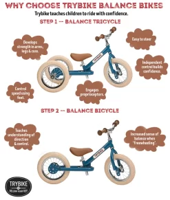 Trybike Steel 2 in 1 Balance Bike Vintage Blue Specs